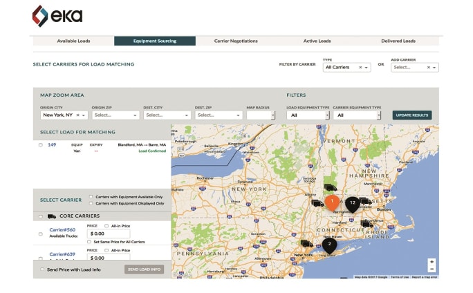 This carrier sourcing screen from EKA’s Omni-TMS is one example of how technology is changing the way brokers, carriers, and shippers interact.