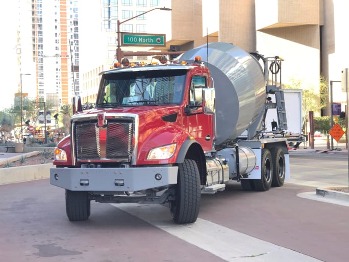 Reaching down, I keyed “D” into the familiar, rectangular, Allison 4500RDS transmission control panel and eased out to make a tight 180-degree turn and begin my first lap through downtown Phoenix. Thanks to the deep 55-inch wheel cuts on the T480, the big mixer handled this tight maneuver deftly, and with a smooth rumble from the PX-9 up front headed down the road.