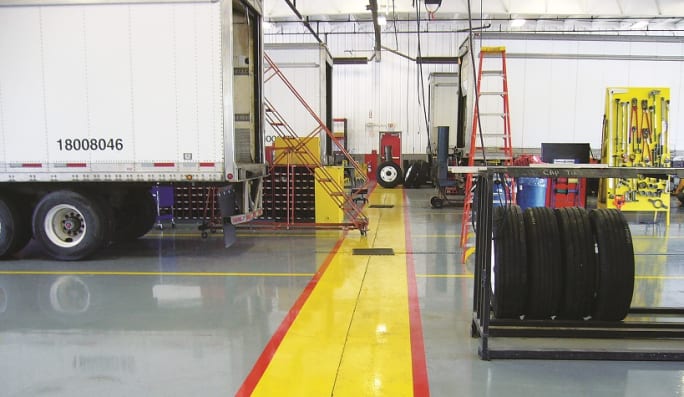 Stuart prefers highly polished, painted and sealed shop floors because “when you spill something it is very easy to wipe it up.” He also believes each bay should have a broom and shovel for cleaning up.