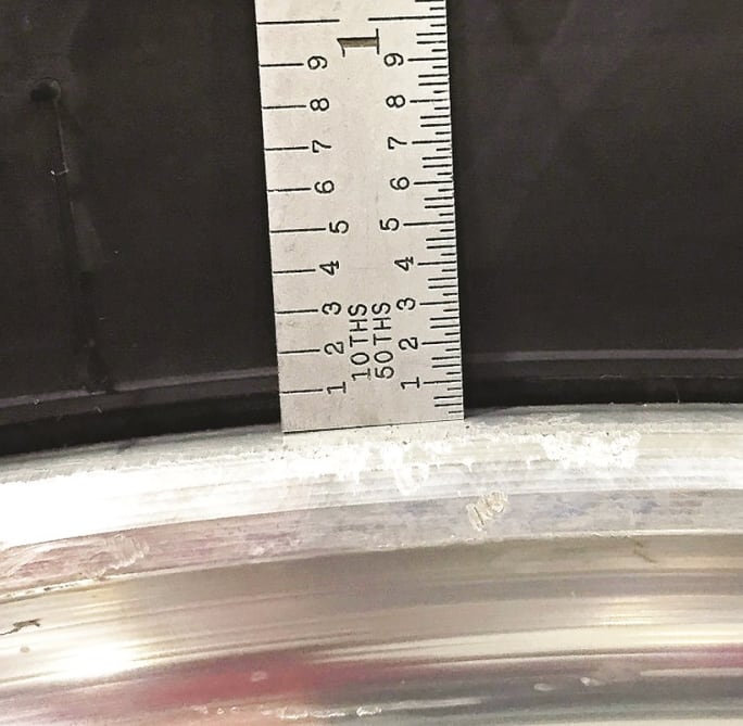 With the bead seated against the rim, the distance from the seating ring to the rim should be measured at four different points that are 90 degrees apart around the rim.