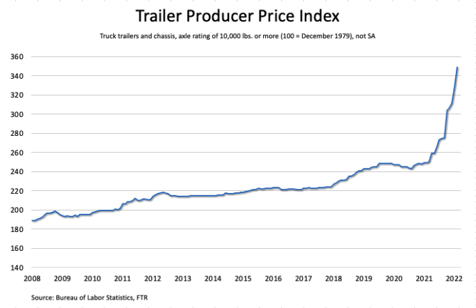 The Producer Price Index (essentially a measure of business-to-business inflation) for truck trailers and chassis has been surging for a year.