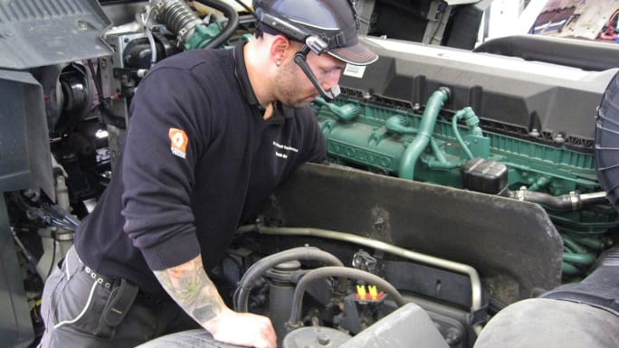Wearable, hands-free, computers allow augmented reality software to overlay a videos, 3D graphics or even real-time mentoring by a remote expert to guide diesel technicians as they perform complex repairs in the shop.