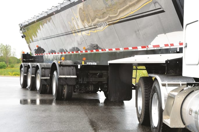 Air system capacity is another critical engineering consideration when spec’ing auxiliary axles, especially with multiple lift axles. Section 121 of the Federal Motor Vehicle Safety Standards requires a certain air reservoir capacity based on the size and quantity of brake chambers used. Those calculations are all done by the OEM when the truck is built, but in the case of an aftermarket installation, say with a dump body, the body builder would be responsible for ensuring the finished product meets all the requirements, and that could include upgrading the air compressor to meet the extra demand for air.