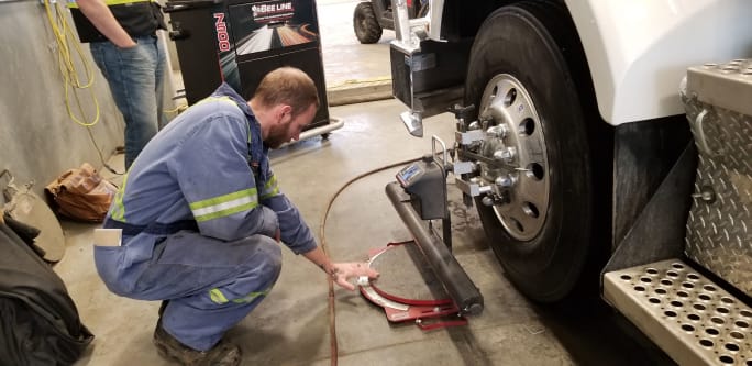 McLaughlin generally cites the 25- to 30-truck number as the cut-off between doing alignments in-house or sending them out. “But everyone is different,” he says. “We have some Bee Line customers with as few as six trucks who do their own alignment work.”