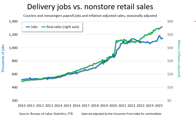 In the end, maybe it’s not that delivery jobs are out of sync with nonstore sales — it’s that our assumptions about what counts as “delivery” haven’t kept up with the digital world’s tendency to redefine everything.