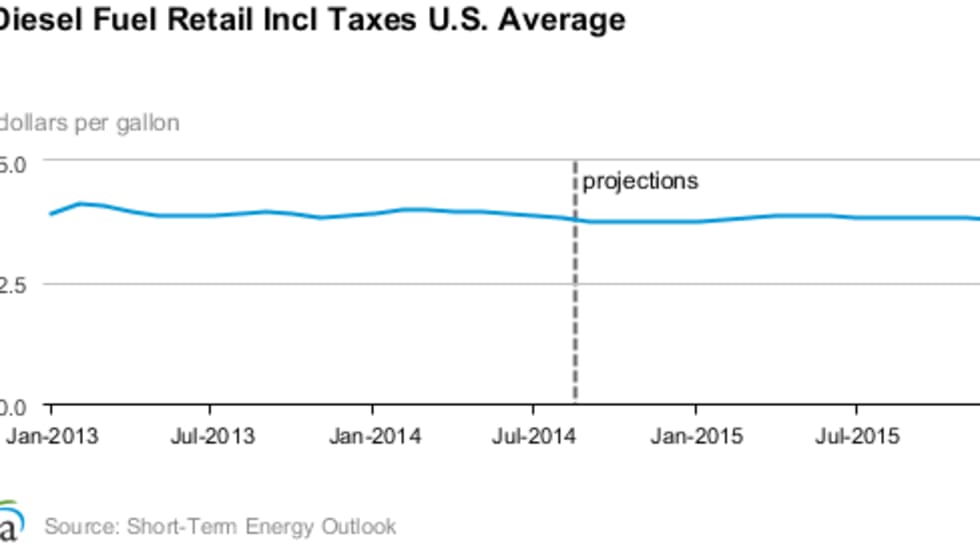 U.S. on highway diesel fuel prices, which averaged $3.92 per gallon in 2013, are projected to fall to an average of $3.86 this year and...