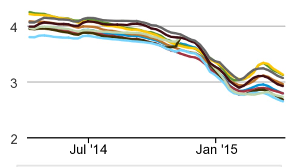 On-highway diesel prices are continuing with their recent round of declines with the national average falling again over the past week and hitting its lowest level since February 2010.