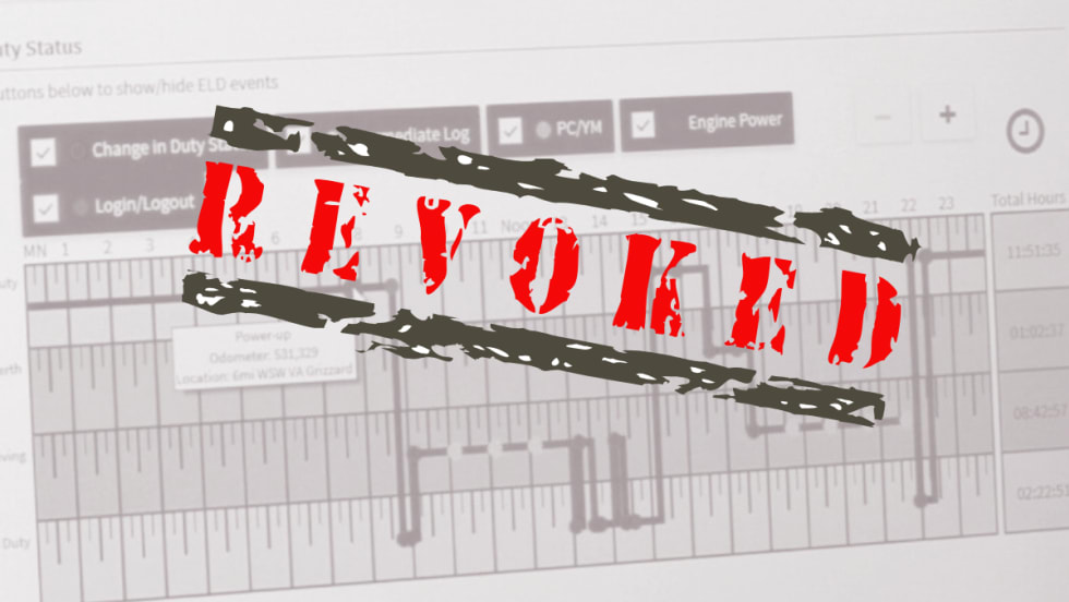 Motor carriers and truck drivers using any of the five electronic logging devices revoked by FMCSA have 60 days to replace them with compliant ELDs.