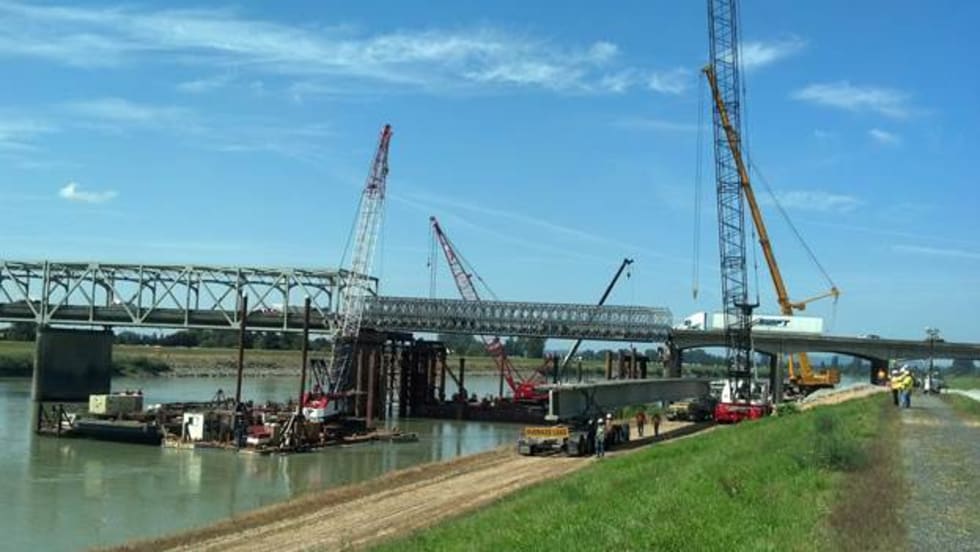 Last week we ran a news story about the hauling of long, heavy concrete beams for reconstruction of the Interstate 5 bridge over the Skagit River in northwestern Washington. You may recall that a section of the aging steel truss bridge tumbled into the water on May 23 when an oversize load hit an upper support beam.