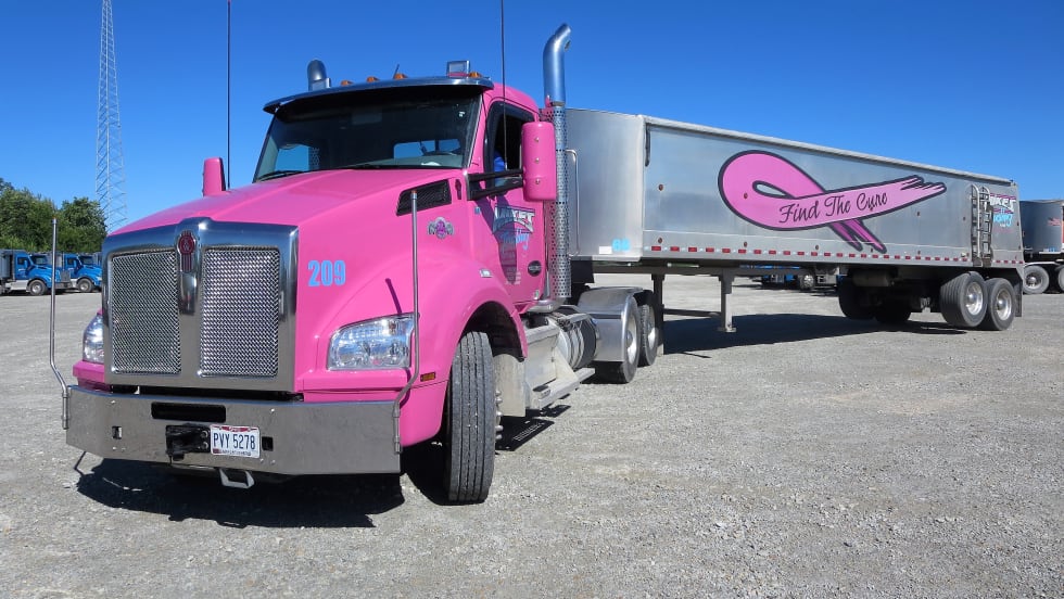 Vinyl wraps are common on van trailers, but not on workaday end-dumps as operated by Mike Culbertson in central Ohio.
