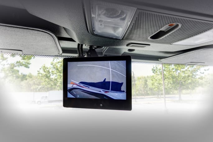 During our test drive, Fox talked much about the potential for improvements in safety stemming from a camera/monitor system. I'm not convinced the cameras and monitors are orders of magnitude better than mirrors. but there are some advantages. You have a wider field of view with the normal and wide-angle cameras, which is a benefit, and the system has a built-in trailer tracking feature. It follows the wheels of the trailer in a turn, which can be very helpful when turning right – a traditionally difficult place to see with conventional mirrors.