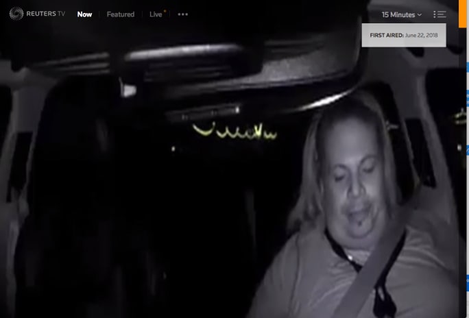 The video shows the driver looking down, appearing to chuckle, then switches to the exterior view as the Uber “self-driving” car plows into a pedestrian walking her bicycle across the street.
