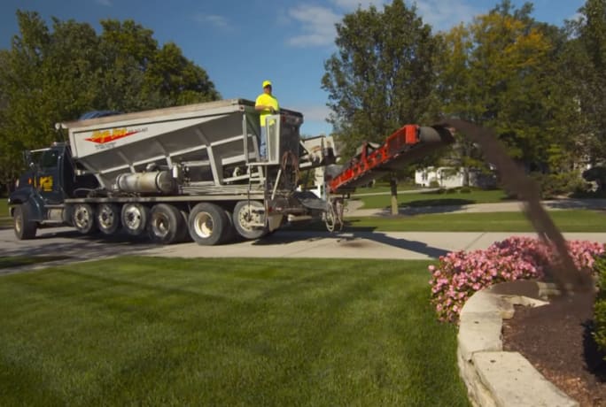 Slinger body can precisely place soil, mulch and gravel. The faster its conveyor runs, the farther the product goes.