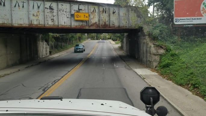 Over the years, numerous too-tall trucks, trailers and at least one motor coach have hit the 12-foot, 7-inch railroad overpass on West Central Avenue, which is State Route 37. Evidently their drivers had missed the many warning signs posted east and west of the structure, and didn’t use marked truck routes that avoid the bridge.
