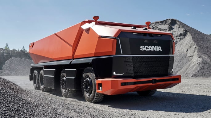 Even vocational trucks, like this futuristic dump truck, would not be immune from dramatic design changes in an autonomous future.