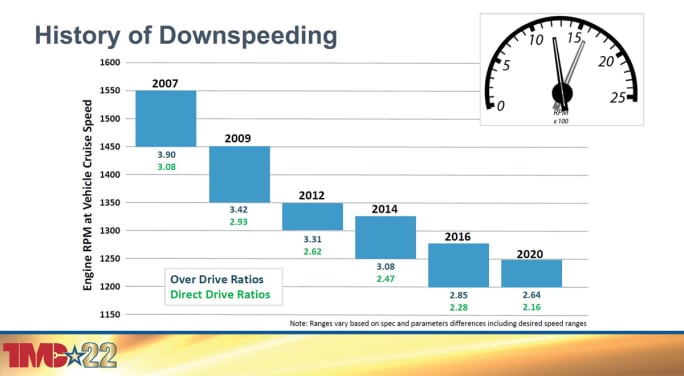 Drivelines have changed to match engine torque profiles, chopping engine cruise speed nearly 500 rpm over the past 15 years.