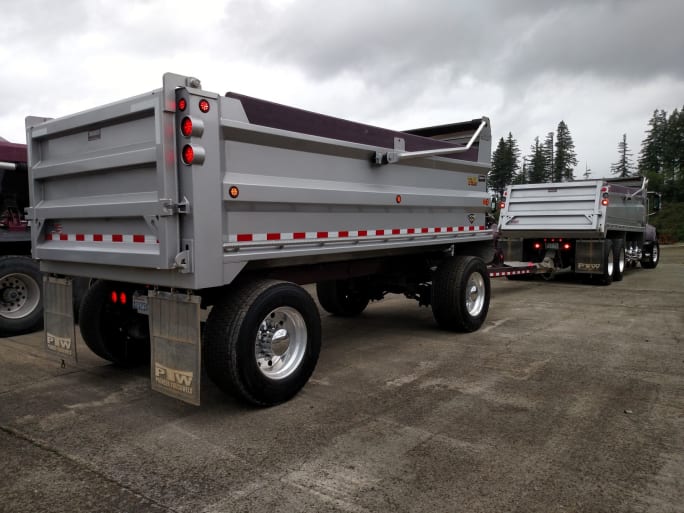 Though the new pup carries less payload than the others, an additional lift axle on the pulling truck gives the rig enough extra capacity to make up for it. McCann had this trailer built by Pioneer Truck Weld in Salem, Oregon.