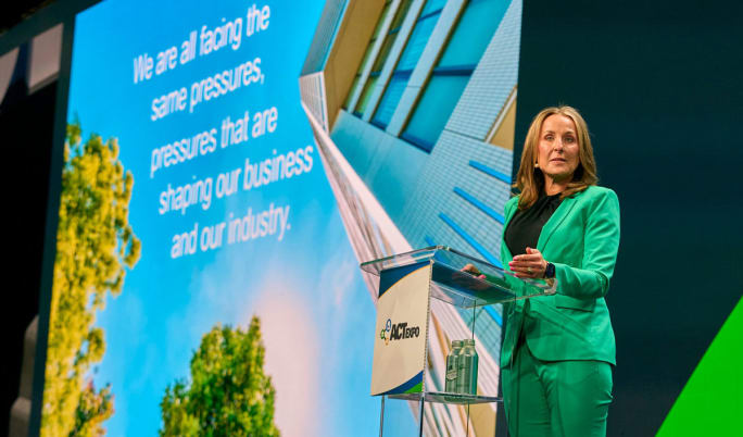 Shelly Simpson, president of J.B. Hunt Transport Services, told the audience at ACT Expo about the company's sustainability successes — which didn't need electric trucks.