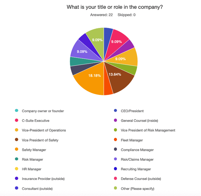 As one of its first steps in gathering data, Bluewire this summer put out an anonymous survey, which Bryan described as a self-inventory for fleets of the various attack vectors that they may be vulnerable to. think of it as a self-inventory of those attack vectors. One of the interesting things the survey has found, he said, is how widespread the concern is, as evidenced by answers to one of the survey questions about the respondents’ role in the company.