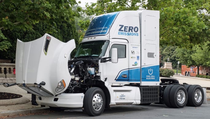 Kenworth is working with Toyota and the Port of Los Angeles to test fuel-cell-electric trucks in southern California. It has built 10 zero-emissions T680 FCEVs under the $82.5 million Shore-to-Store project led by the port.