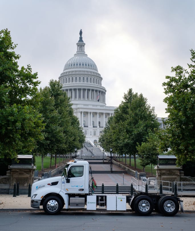 Kenworth has built 10 zero-emissions T680 fuel-cell-electric trucks under the Shore-to-Store project led by the Port of Los Angeles. It recently took one to Washington, D.C.