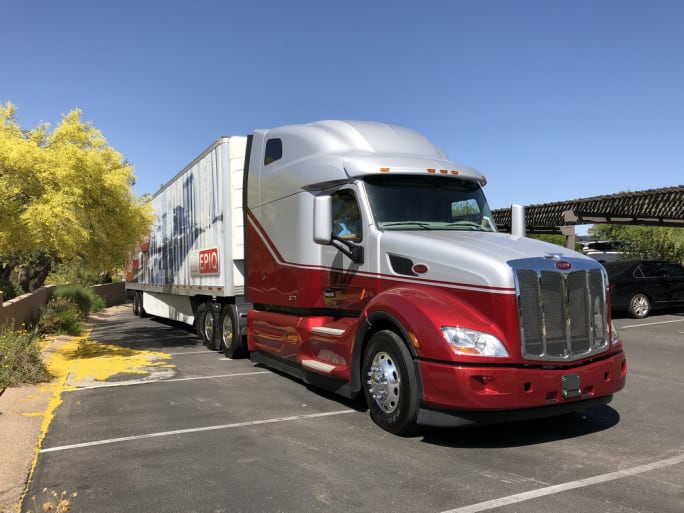 This Peterbilt 579 EPIQ model and the trailer were equipped with all the aero devices commercially available.