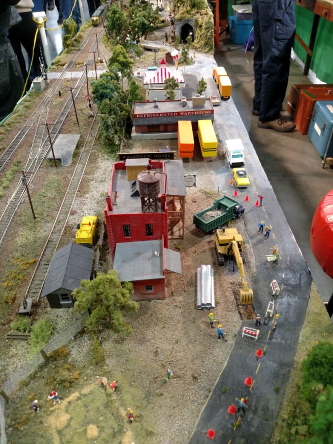 At such affairs I always look for trucks amid the miniature rail scenes, and there were plenty here. The hobbyists seem to understand that the two transportation modes are not just competitors but sometimes partners. Unlike the trains, the trucks don’t move, but are positioned in realistic proximity to railroad tracks and industries.