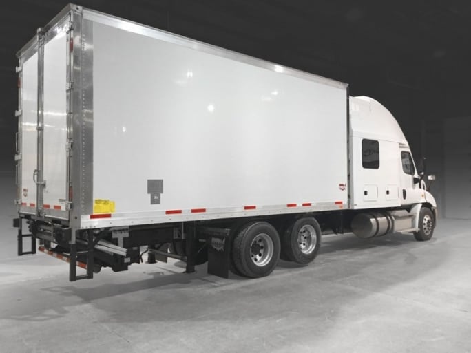 The 100th MSC truck body was placed with an unnamed carrier that specializes in deliveries of perishable food products. The body’s long rear overhang is typical of expedited vehicles; note the steel landing gear that supports the body during loading and unloading.