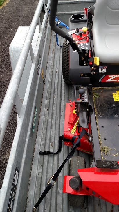 Tail and marker lights are LEDs and there are plastic reflectors and reflective tape in numerous locations. U-Haul’s signature orange color looked like vinyl material stuck to the otherwise gray, unpainted galvanized steel surfaces. A 5x7 has a single axle which doesn’t ride as smoothly as the tandem axles on the 6x12, so a mower moved around a bit as I went over bumps at highway speeds while those I carried in the 6x12 stayed put. Both trailers were easy to pull with my mid-size SUV.