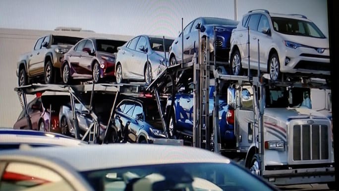 There are all kinds of themes in these “spots,” and one now playing is Toyota’s “here comes another truckload of ‘18 models.” We see spokespersons standing outside a showroom and observing a car-hauling rig entering the lot loaded to the gills with Camrys, Corollas, RAV4s, Tacomas, and so on. The rack-type trailer is open so the shiny new vehicles gleam in the sun.