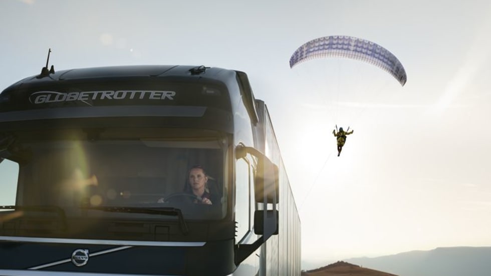 Read More →In Volvo's latest promotional stunt video, the goal is to maintain a precise speed that allows pro paraglider Guillaume Galvani to stay in flight behind the Volvo FH rig on a highway in the Croatian Alps.