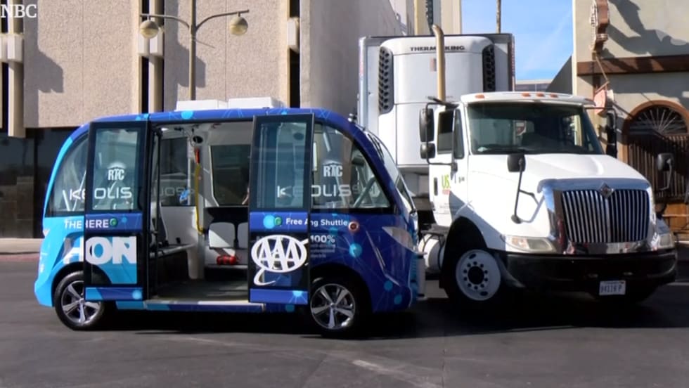 Read More →Media outlets are reporting a collision between a driverless shuttle bus and a tractor-trailer in Las Vegas just hours after the bus was unveiled - and the truck driver was blamed. Equipment Editor Jim Park has more in his On the Road blog.