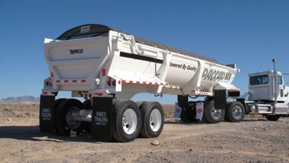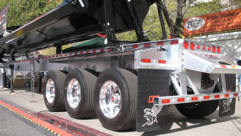 Most trailers used for product promotion are vans whose broad sides become rolling billboards for truck components of some kind or other. But here we have an end-dump trailer whose message is aimed at construction guys