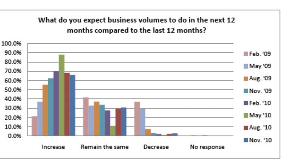 A majority of carriers expect volumes to increase over the next year, and three-quarters expect rate increases, according to a study by the transportation consulting firm Transport Capital Partners