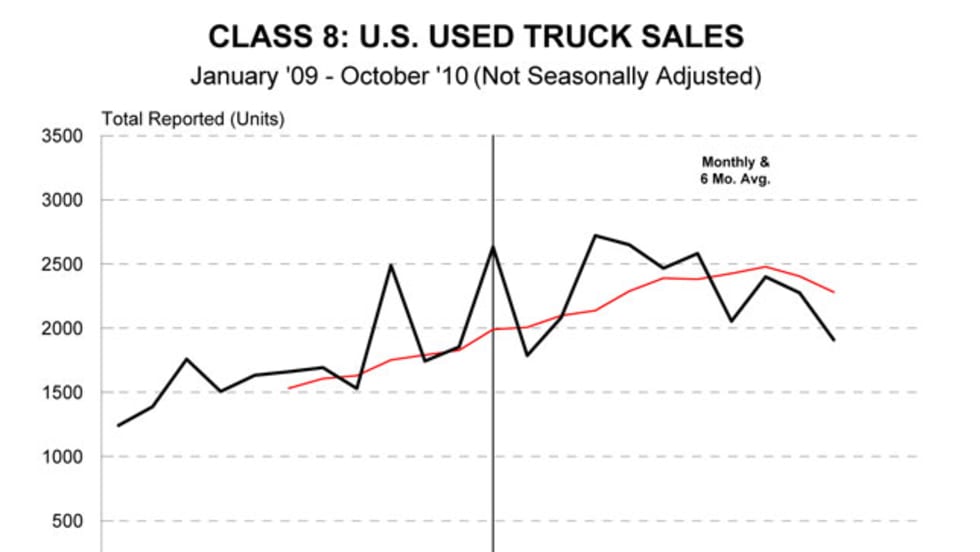 The volume of sales of used heavy-duty (Class 8) commercial vehicles has slowed in recent months, declining 16 percent month-over-month in October according to ACT Research Co