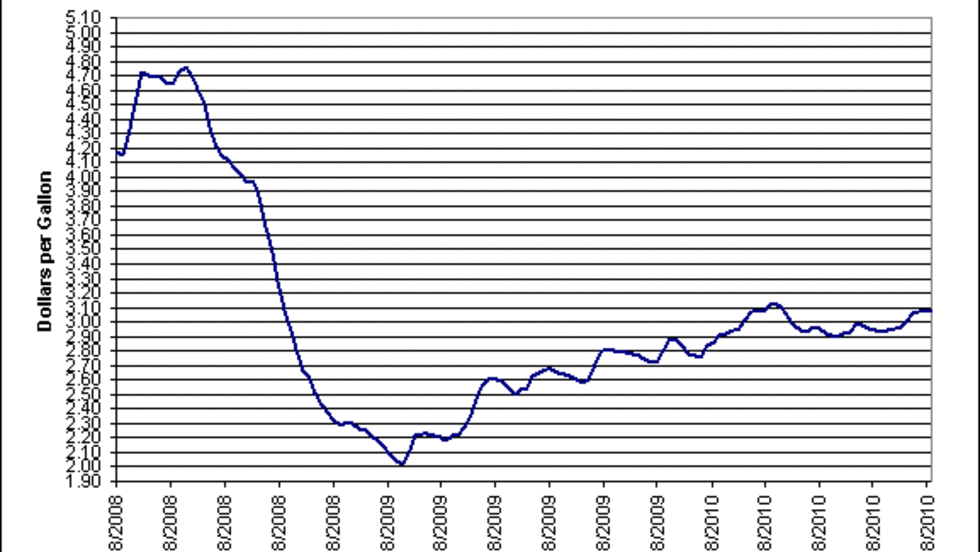 The national average price of a gallon of diesel was unchanged from last week, according to weekly figures from the U.S. Department of Energy