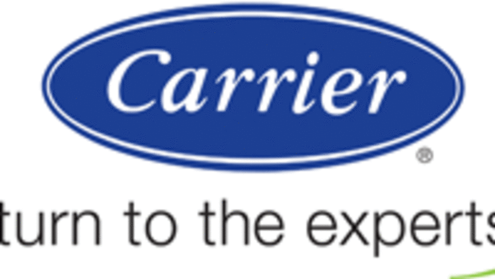 Carrier Corp. is emphasizing its commitment to environmental sustainability through a new brand identity, which includes a stylized green leaf with the existing "turn to the experts" tag line