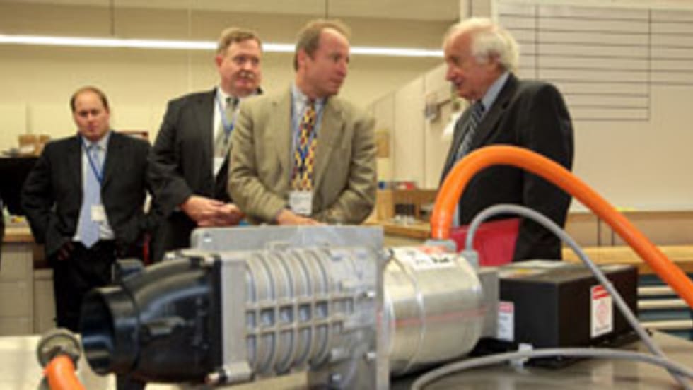 Eaton Corp. hosted U.S. Rep. Sander Levin, D-Mich., who previewed the company's commercial vehicle hybrid power technology at its Michigan Innovation Center in Southfield