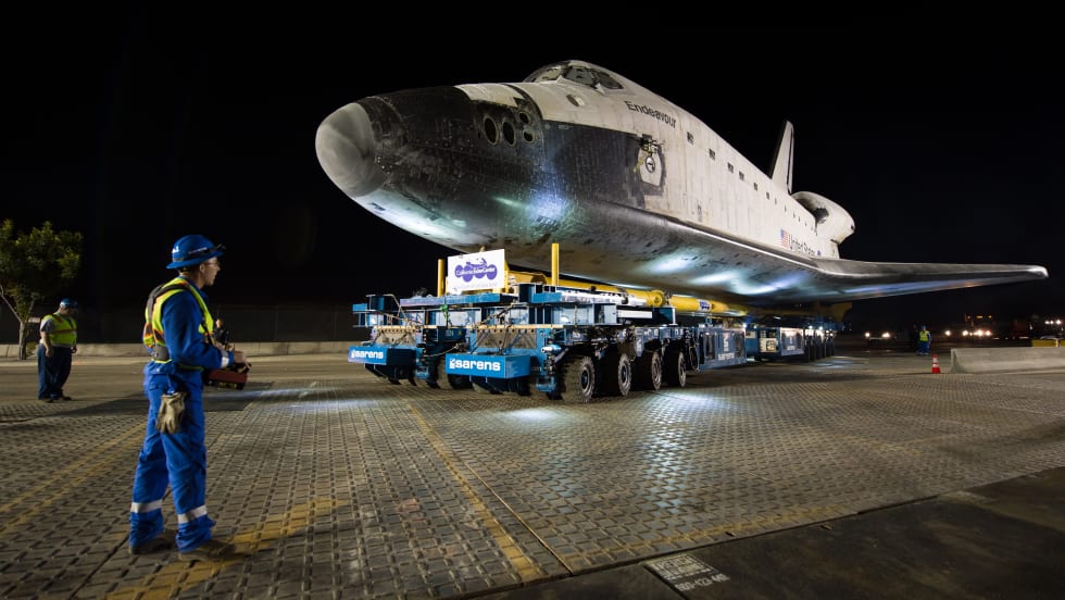 After traveling more than 124 million miles in space, the Space Shuttle Endeavour had one more 14.2-mile journey to make through the streets of Los Angeles to its final resting space at the California Science Center.
