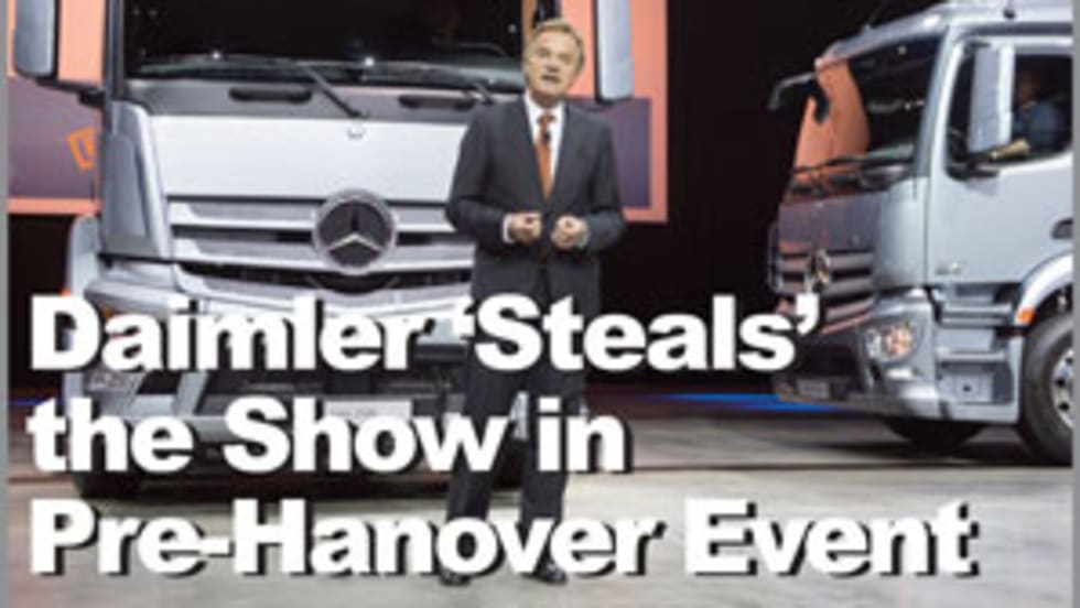 Emphasizing environmentally friendly, fuel-efficient and safer vehicles, Daimler flashed highlights of its commercial vehicle brands in advance of the 64th IAA Commercial Vehicles show that will take place in Hanover, Germany, Sept. 20-27