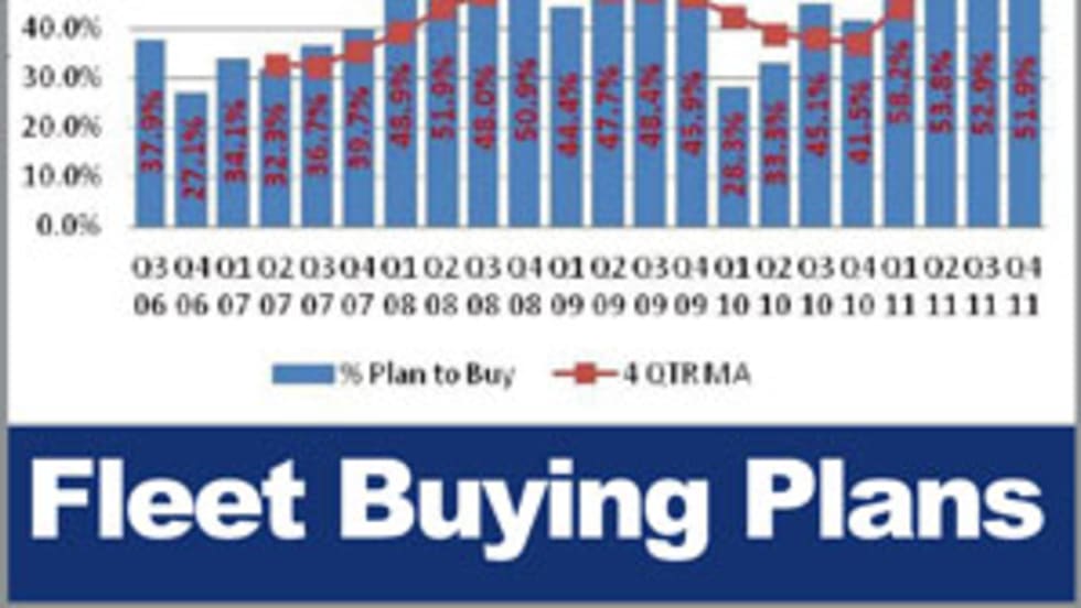More fleets are planning purchases of power units and trailers at a larger volume than the same period last year, according to a quarterly fleet survey. The Q4 2011 Fleet Sentiment Report Buying Index shows a 22% improvement over the same quarter 2010. The index currently stands at 89.2. The lower index for Q4 versus Q1-Q3 is primarily a reflection of fewer fleets planning trailer orders in the next three months