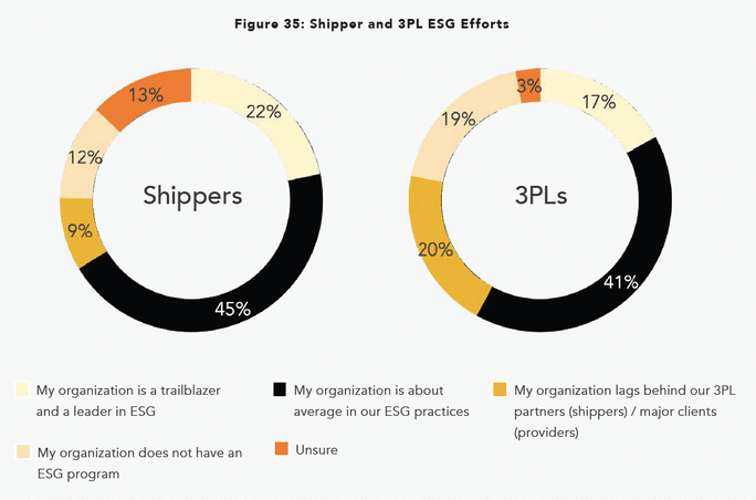Only 22% of shippers and 17% of 3PLs rate themselves as leaders in ESG.