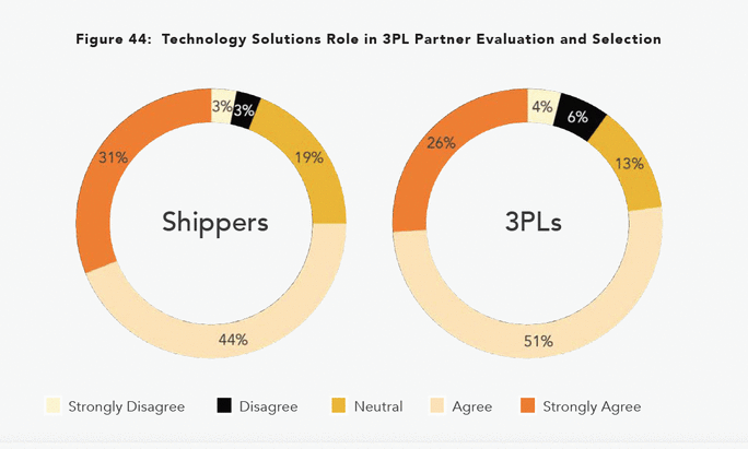The study revealed respondents believe the right intelligence can optimize operations, improve real-time visibility, and enable rapid decision-making. The expectations for innovative technology have increased across supply chains. In fact, 65% of shippers reporter higher expectations, as do 78% of 3PLs.