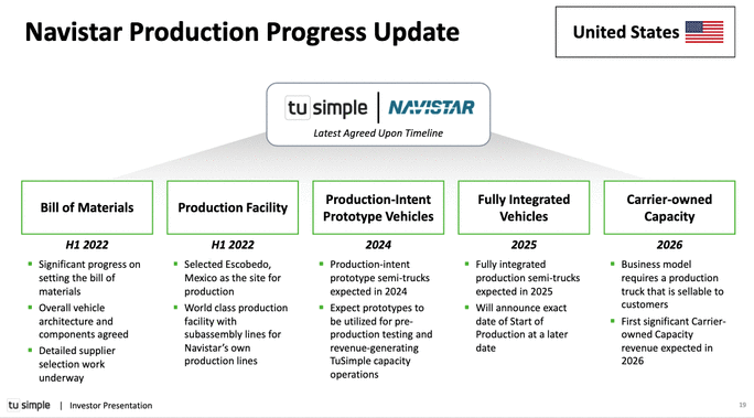 TuSimple also offered an update on its partnership with Navistar in its third-quarter earnings report. The latest agreed-upon timeline calls for: