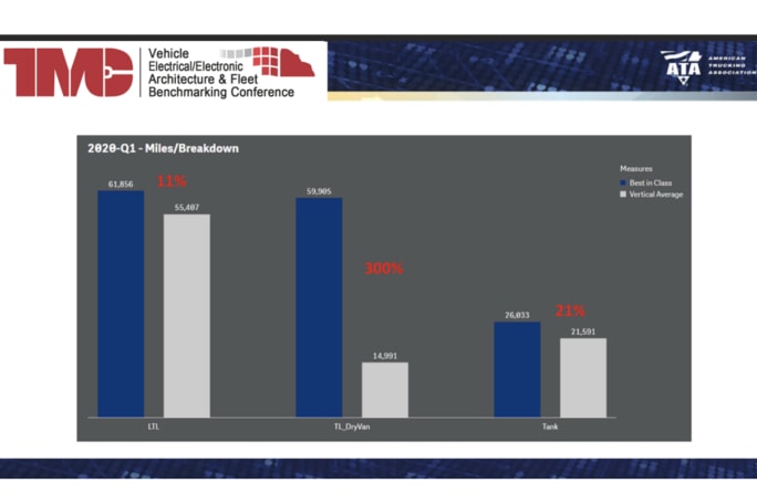 “If one truckload carrier can run 60,000 miles between an unscheduled breakdown, why can’t everyone else running similar types of equipment, similar types of routes?” Buell asked, referring to the importance of benchmarking. Even the 11% difference seen between the best and average LTL fleet could deliver meaningful savings to the bottom line.