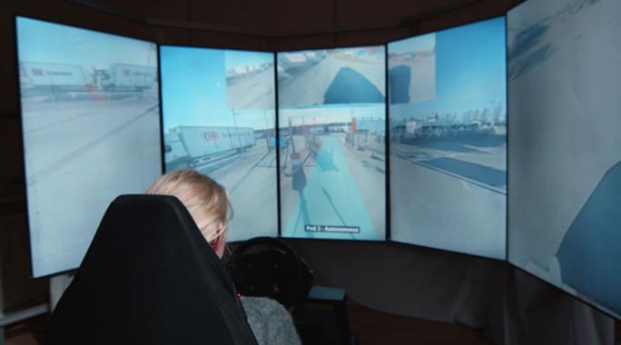 California is proposing that remote operator/assistants of autonomous trucks have the same licensing requirements as drivers in the cab. Here, an Einride remote operator in 2020.