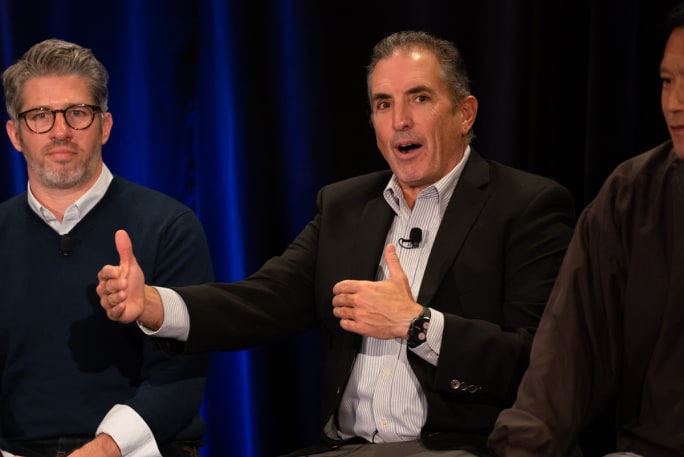 "Scaling Charging Infrastructure for Electric Trucks" panel at the Fleet Forward Conference. Left to right: Rob Hoysgaard of LeasePlan, Alec Cervenka of Kenworth, Brenden Harney of Proterra, Simon Horton of Edison Energy and Darrell Kong, of Cradle Mountain Advisors.