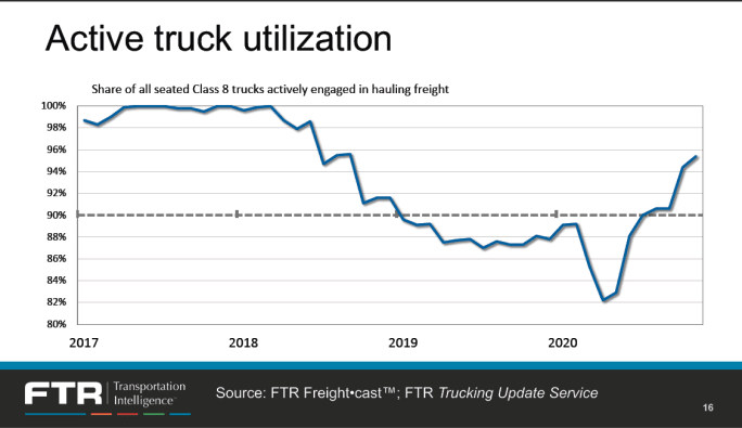 “We are going to be challenged for months to come due to pandemic and drug testing with active utilization,” said Avery Vise, FTR’s VP of trucking.
