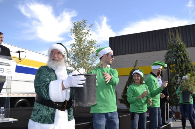 The event concluded with Daimler and Penske honoring the eM2 team, all dressed in green and wearing green Santa hats. They loaded small trees into the back of one of the eM2s for delivery to a company called TreePeople.