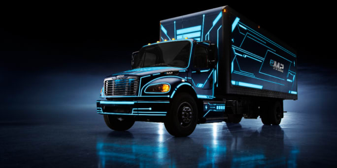 The Freightliner medium-duty eM2 has a maximum range of 230 miles on a full charge.